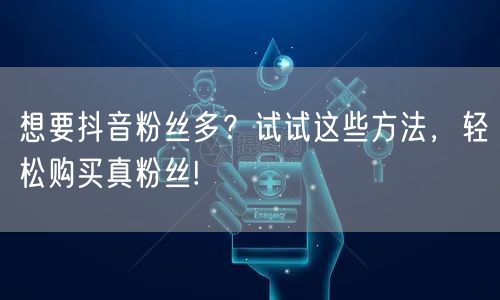 想要抖音粉丝多?试试这些方法,轻松购买真粉丝!对于想要在抖音平台上快速提升粉丝数量的用户来说,购买真粉丝是一种有效的方式。本文将为你介绍几种有效的方法,帮助你轻松购买到真正的抖音粉丝,让你的账号快速积累人气。