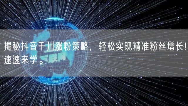 通过本文介绍的抖音千川涨粉策略,你可以轻松实现精准粉丝增长。在抖音平台上获得更多关注和粉丝,有助于提升个人品牌知名度和影响力。希望本文的涨粉策略能对你有所帮助,祝你在抖音平台上取得更好的成绩!